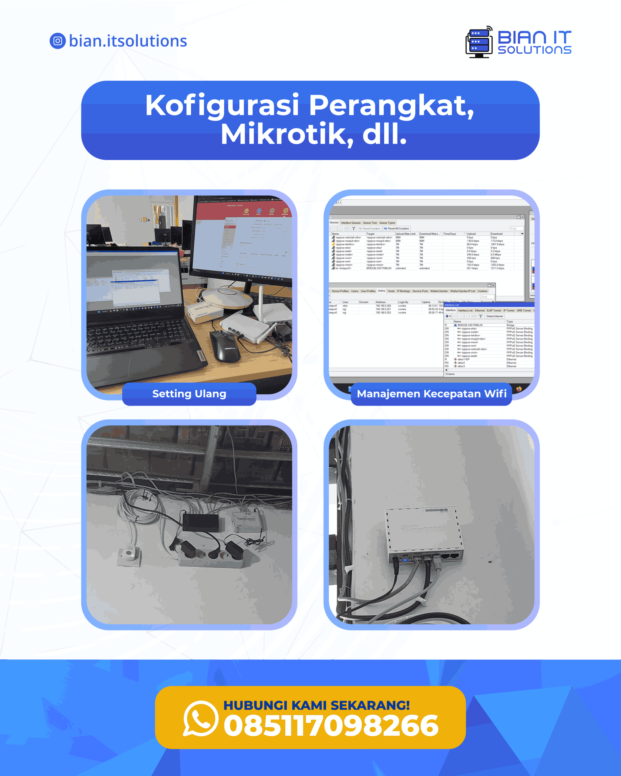 Kami menawarkan rangkaian lengkap layanan IT untuk kebutuhan perumahan, komersial, dan industri ringan.